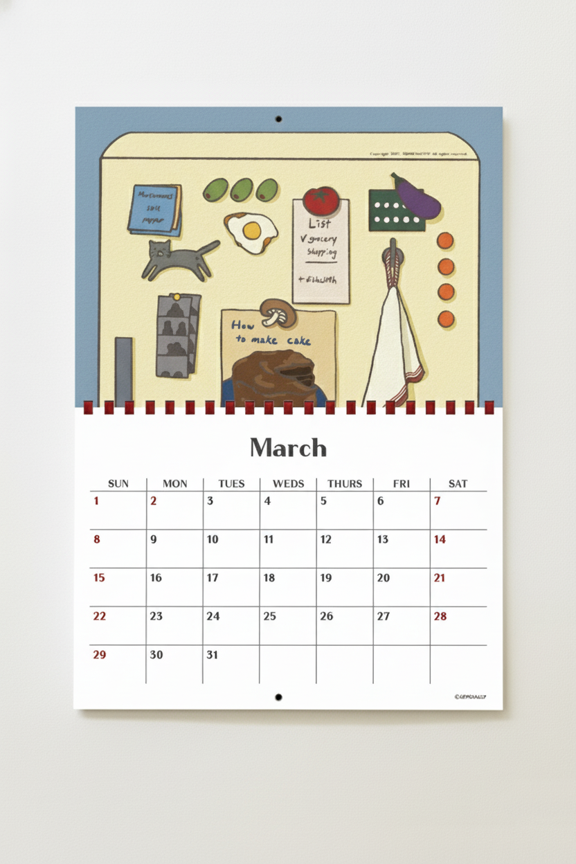 벽걸이용 달력에는 타공(지름 5mm)이 있어