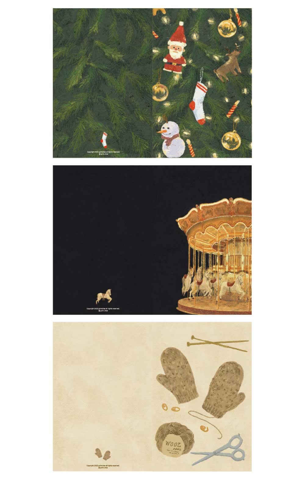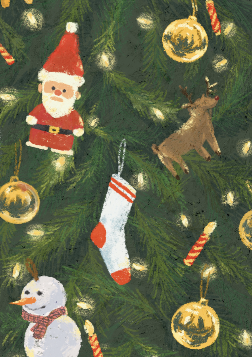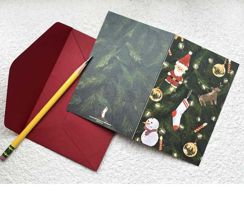 크리스마스 트리를 밝히는 오너먼트 카드 세트
